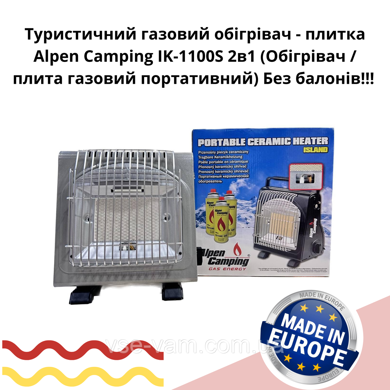 Туристичний газовий обігрівач - плитка Alpen Camping IK-1100S 2в1 (Обігрівач / плита газовий портативний) Без балонів!!!
