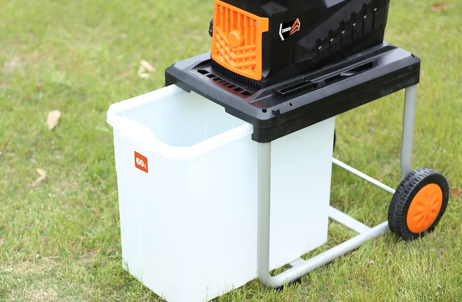Електричний садовий подрібнювач Yard Force ER U45 — тихий подрібнювач із двигуном потужністю 2800 Вт, контейнером для збирання відходів об'ємом 60 літрів, самозакривається, дуже тихий — для деревини діаметром до 45 мм